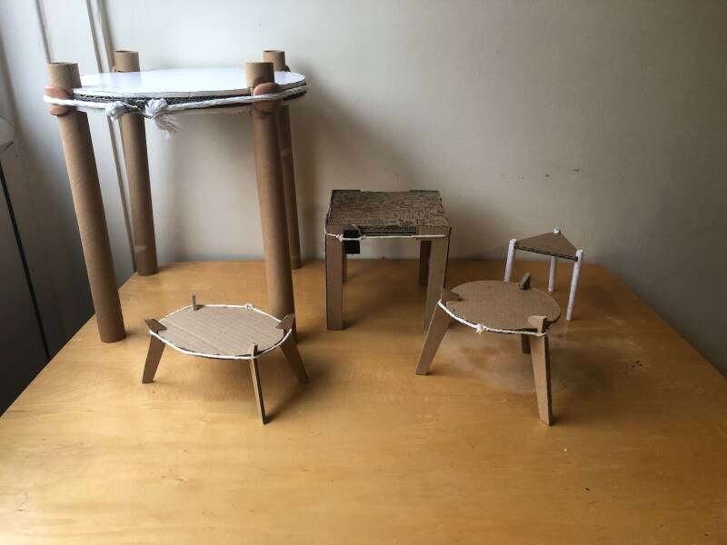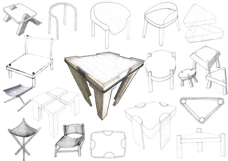 A sustainable, flat packed piece of furniture which utilises fixings as a conversational aspect. The inspiration for this project came from the desire to reimagine the garish and often ugly nature of the fixings used in most flat packable items and attempt to show them off as a structural aspect rather than to try and hide them.